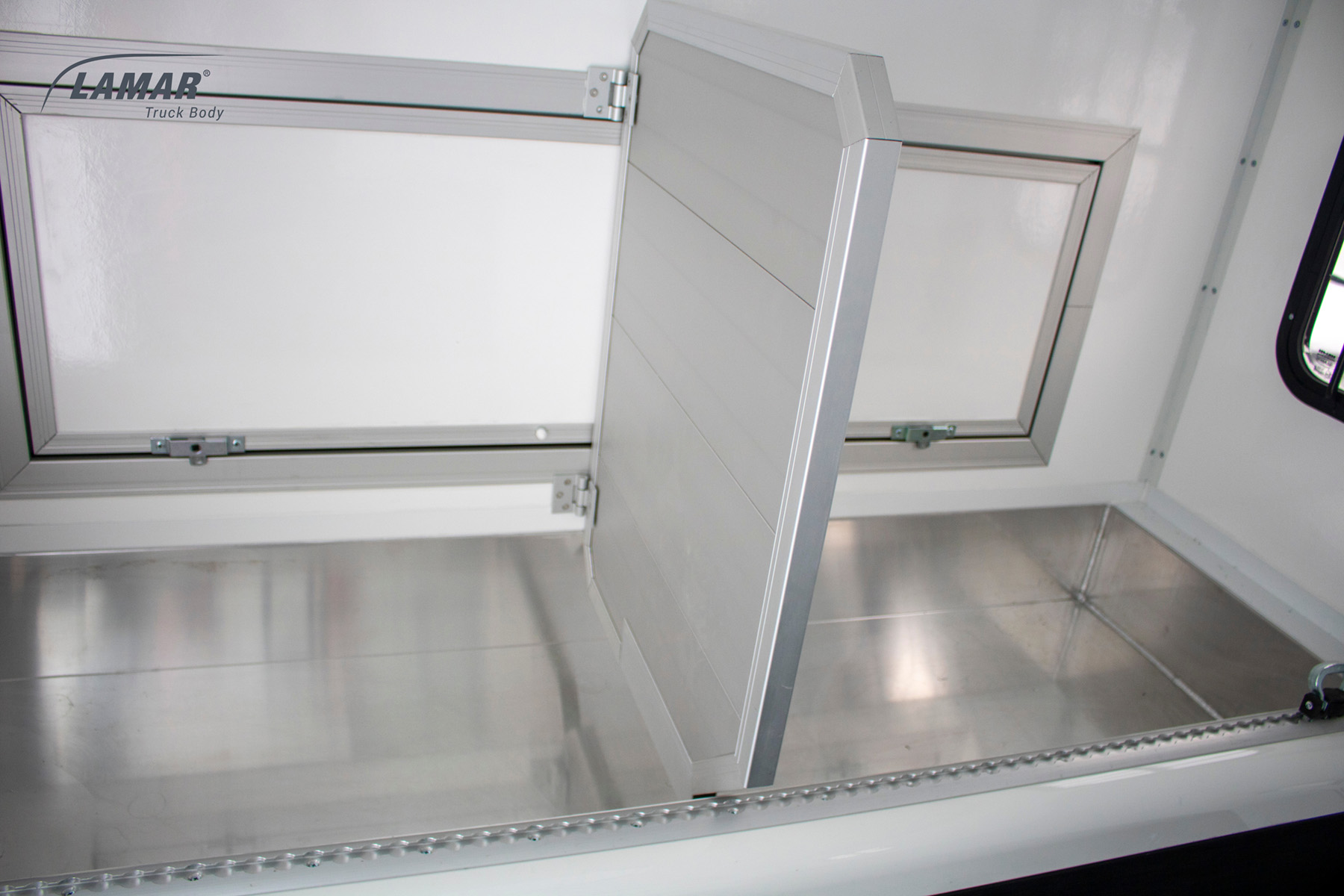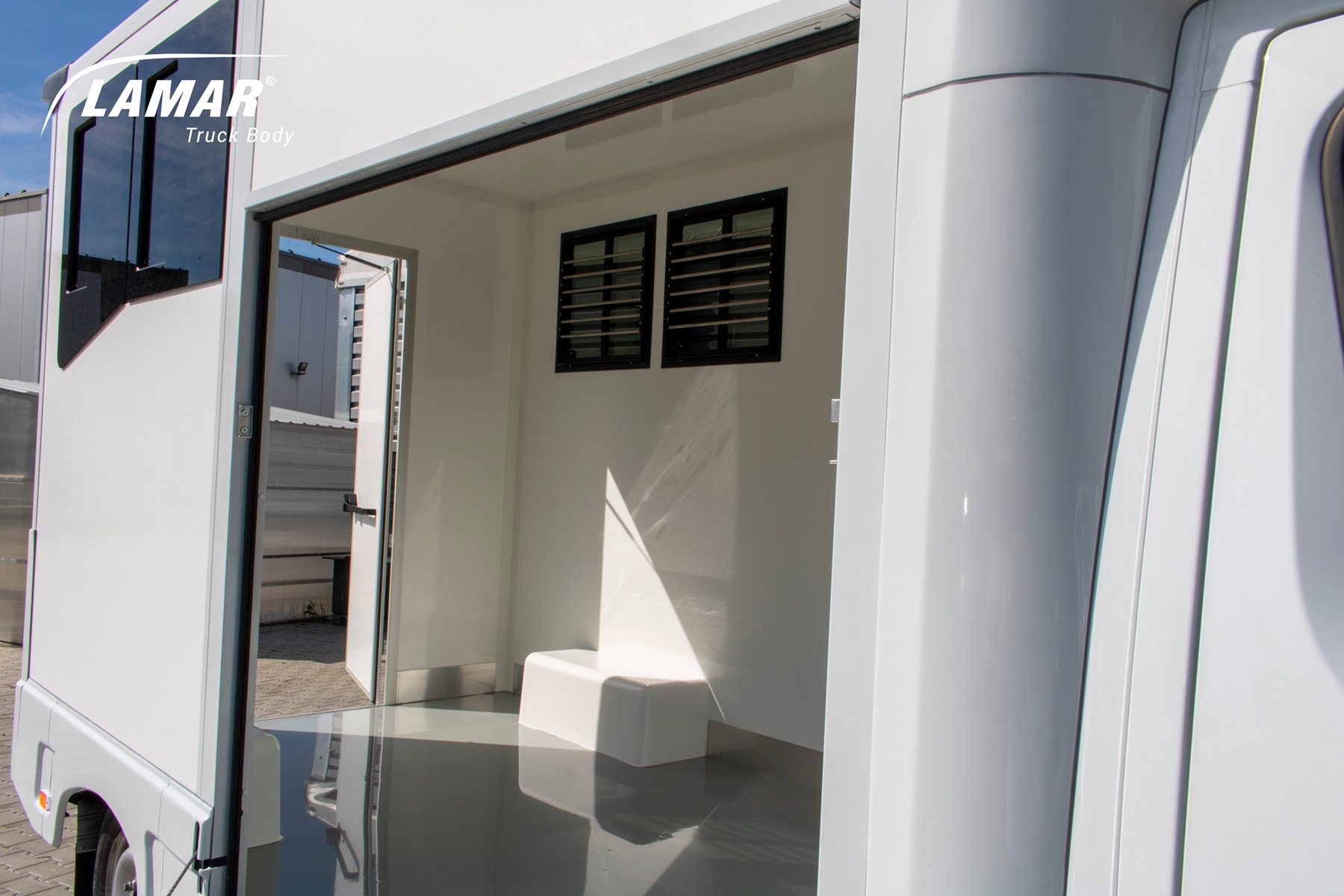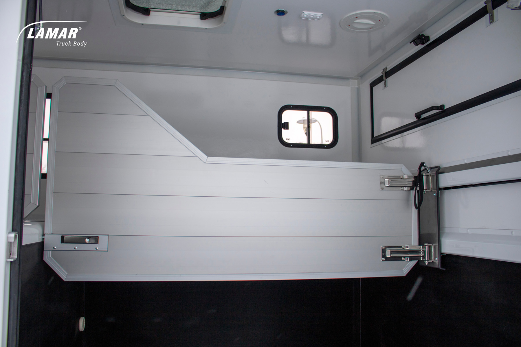 Koniowozy HorseTruck w standardzie zostały wyposażone w przestronne okna w ścianach bocznych oraz dodatkowe okno dachowe. Dzięki temu wnętrze pojazdu przez okres trwania transportu konia wypełnione jest naturalnym światłem. Montujemy również oświetlenie wnętrza LED oraz niebieską diodą dla uspokojenia zwierzęcia w czasie nocnej jazdy. Ściany koniowozu Lambox wykonane z płyt warstwowych typu Sandwich są na tyle trwałe, by sprostać nieprzewidzianym sytuacjom i temperamentowi konia. Komfort poprawia ruchoma i wzmocniona ściana działowa instalowana we wnętrzu. Pozwala ona oddzielić od siebie dwa przewożone wierzchowce i zaplecze akcesoriów. Zapewnia też stabilność całej konstrukcji. W porównaniu z bukmanką koniowóz ma więcej miejsca niezbędnego na paszę i ściółkę.